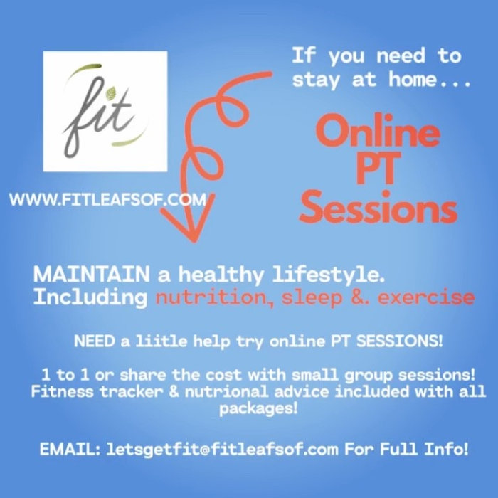 Email letsgetfit@fitleafsof.com for more info about our lastest online PT sessions