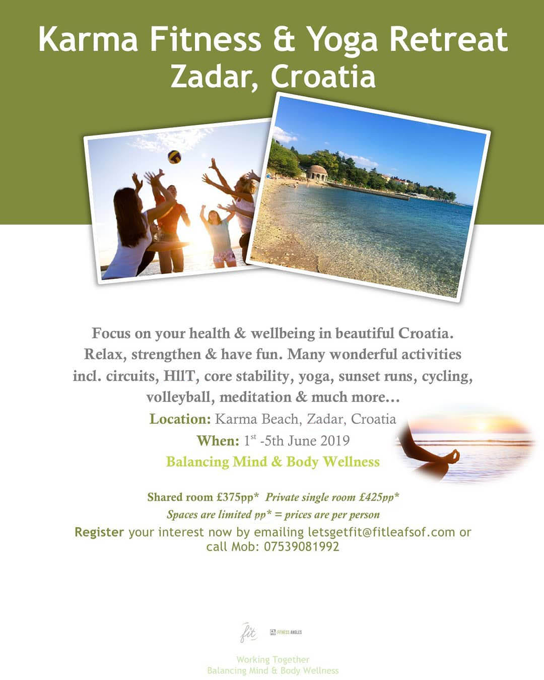 Email letsgetfit@fitleafsof.com for more info about our 2023 Yoga Retreat in Croatia